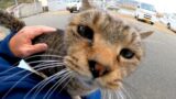 【感動猫動画】ベンチに猫が座っていたので隣に座って撫でるとゴロゴロと喜んで膝の上に乗ってきた
