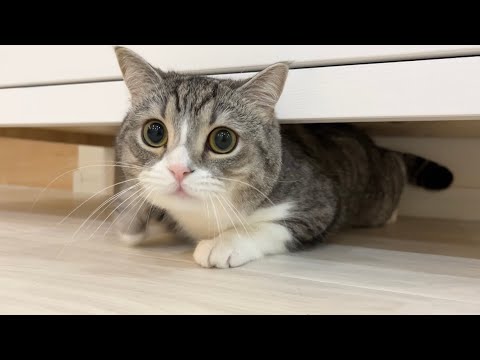 お留守番中に地震があった模様で、もち様賢い❣️棚の下に潜り込んでます。地震の基本出来てるやな… https://t.co/I9KIyeXmq1